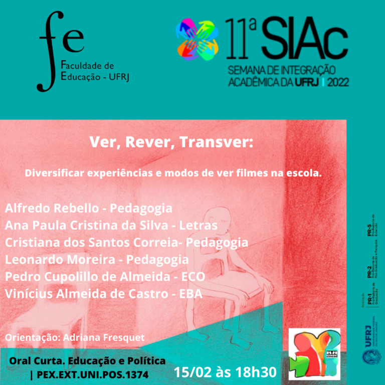 11ª SCIAc, Semana de Integração Acadêmica da UFRJ.Ver, rever, transver: Diversificar experiências de ver filmes na escola.